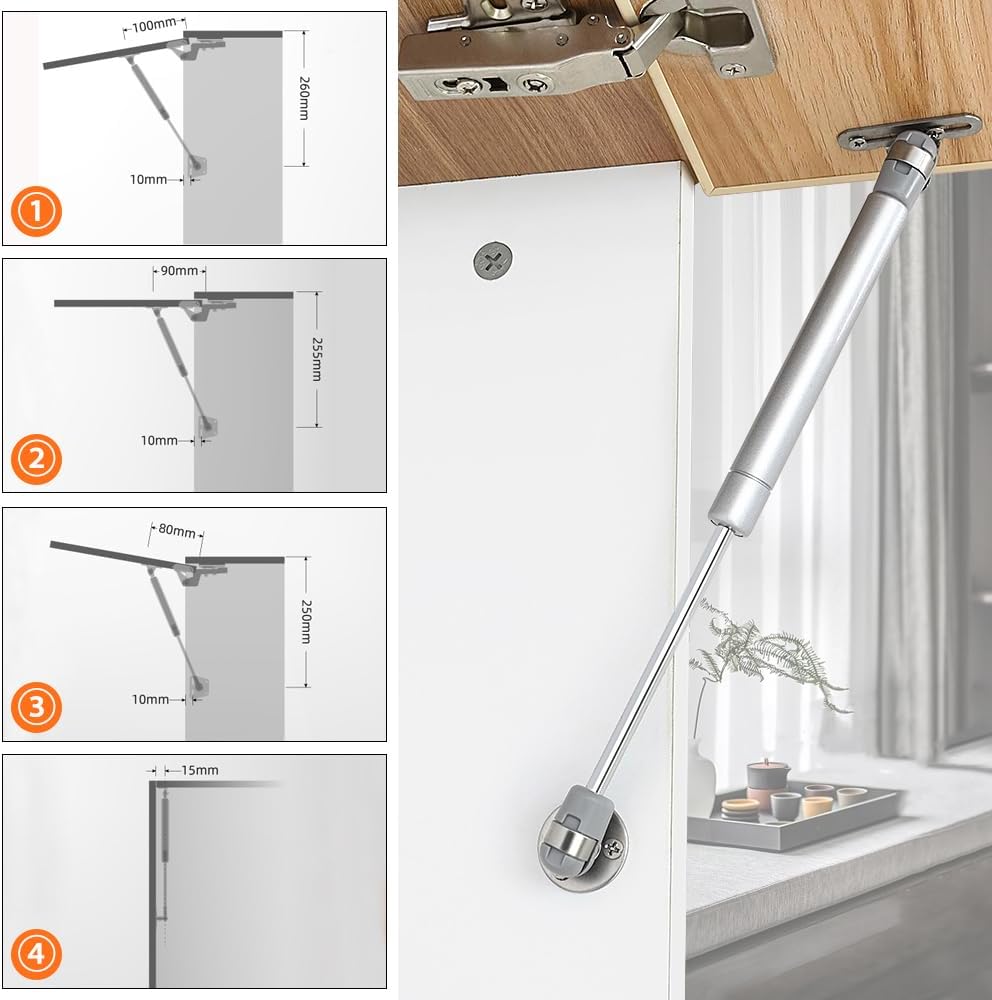 Facile à installer : Le ressort à gaz est facile à installer et est livré avec des pièces. Tout ce dont vous avez besoin est un tournevis, qui est facile à installer et à retirer. Il suffit de visser dans n’importe quelle surface molle ou de pré-percer un avant-trou sur n’importe quelle surface dure (par exemple, le bois, le métal) et le tour est joué !